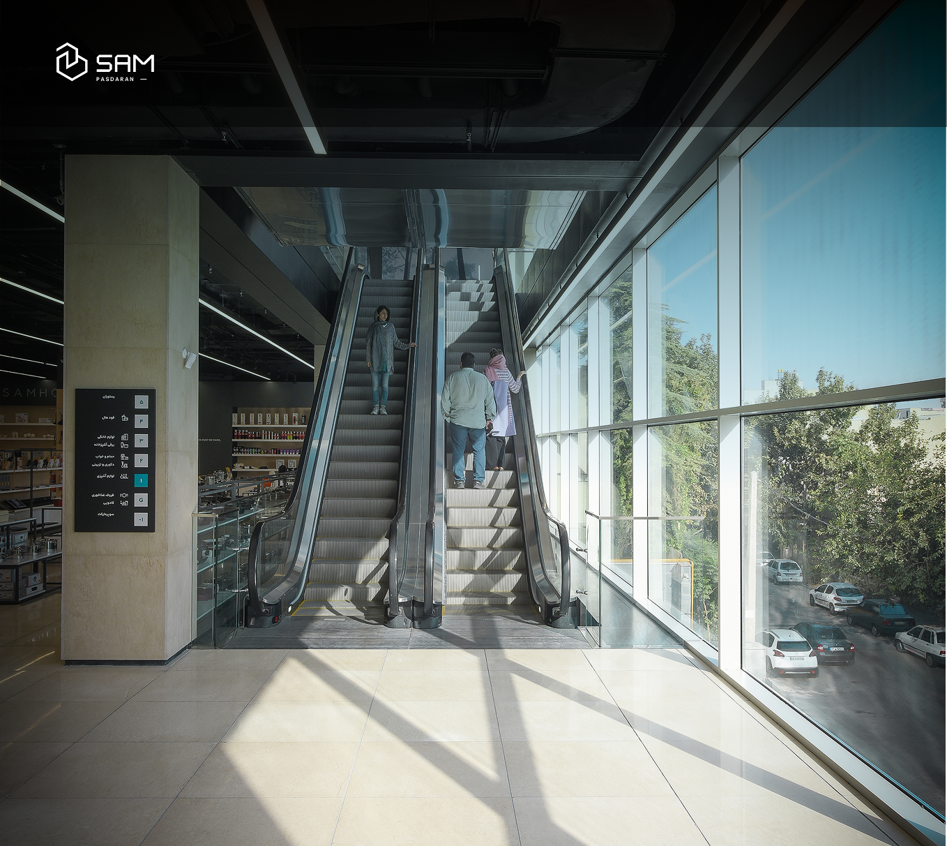 مرکز تجاری سام پاسداران، نبش بوستان پنجم، با الهام از الگوی دپارتماناستور (Department Store) به جای ساختار سنتی مغازهمحور، بر مبنای یکپارچگی فضایی، سهولت دسترسی و تجربهای نو از خرید طراحی شده است. در این مدل، برندها در فضایی یکپارچه، بدون مرزبندیهای معمول، در کنار هم قرار میگیرند و تجربهای مدرن، پویا و کارآمد را برای خریداران رقم میزنند. این طرح در مسابقه معماری سال 1391 از میان طرحهای مختلف معمارهای مطرح کشور انتخاب شد.