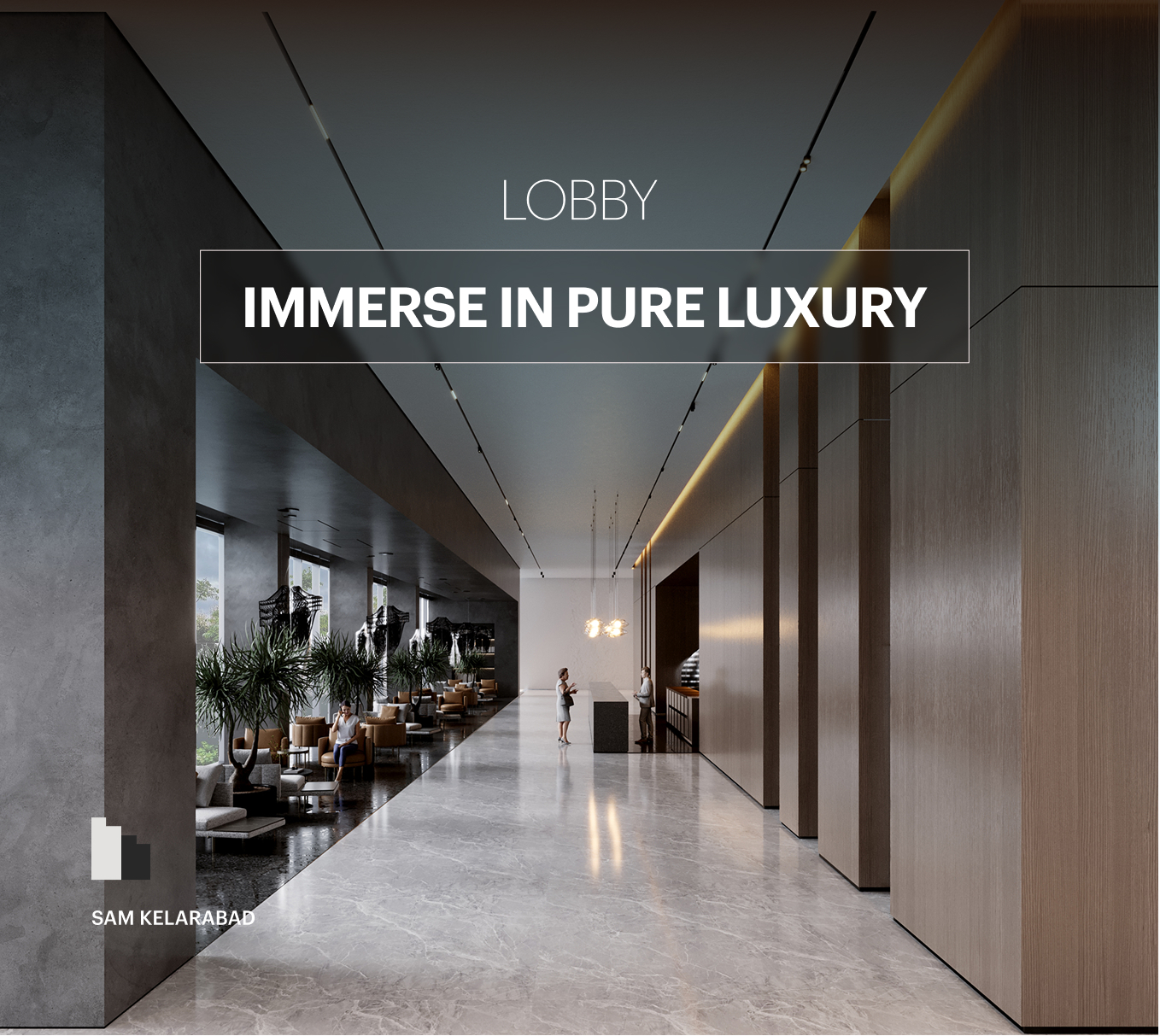 لابی مجموعه با ارتفاع 7.5 متر ، محیطی دلنشین و خاص برای ساکنین و مهمانان ایجاد کرده است.