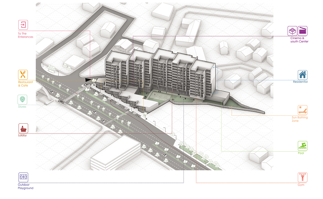 زیربنای مفید مسکونی : ۲۲.۰۴۱ متر مربع (۱۰۰ واحد)